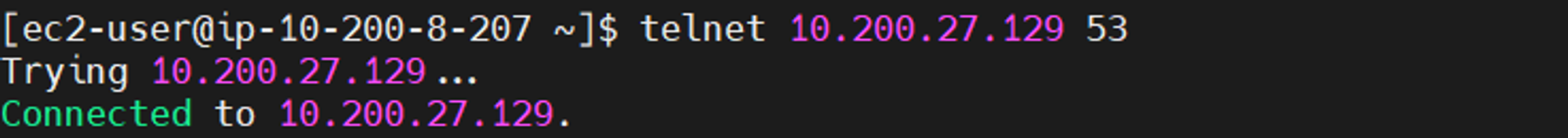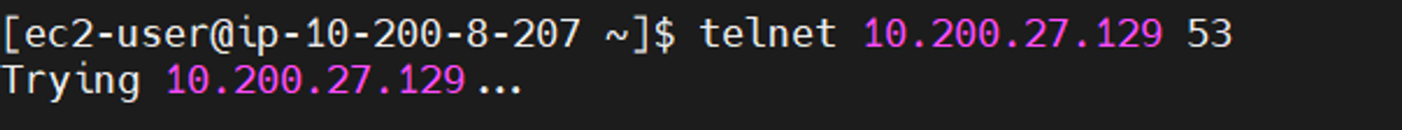 - telnet 명령어를 통해 DNS port 53 Open 여부 확인 → 액세스 불가 확인