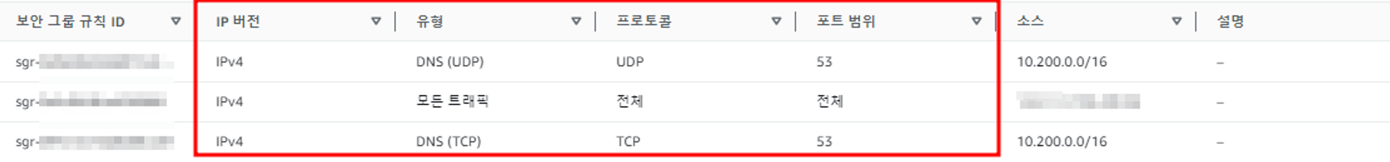 각 인스턴스에 적용되는 보안 규칙에서 대해서 AWS DNS 서버의 보안 규칙 중 인바운드에 대한 부분을 허용