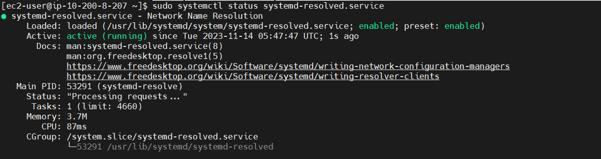 - daemon 형식으로 실행중인 Amazon Linux의 DNS Resolve 구성 확인