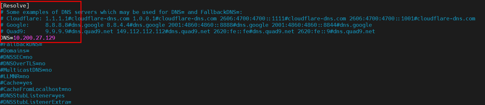 sudo vi /etc/systemd/resolved.conf