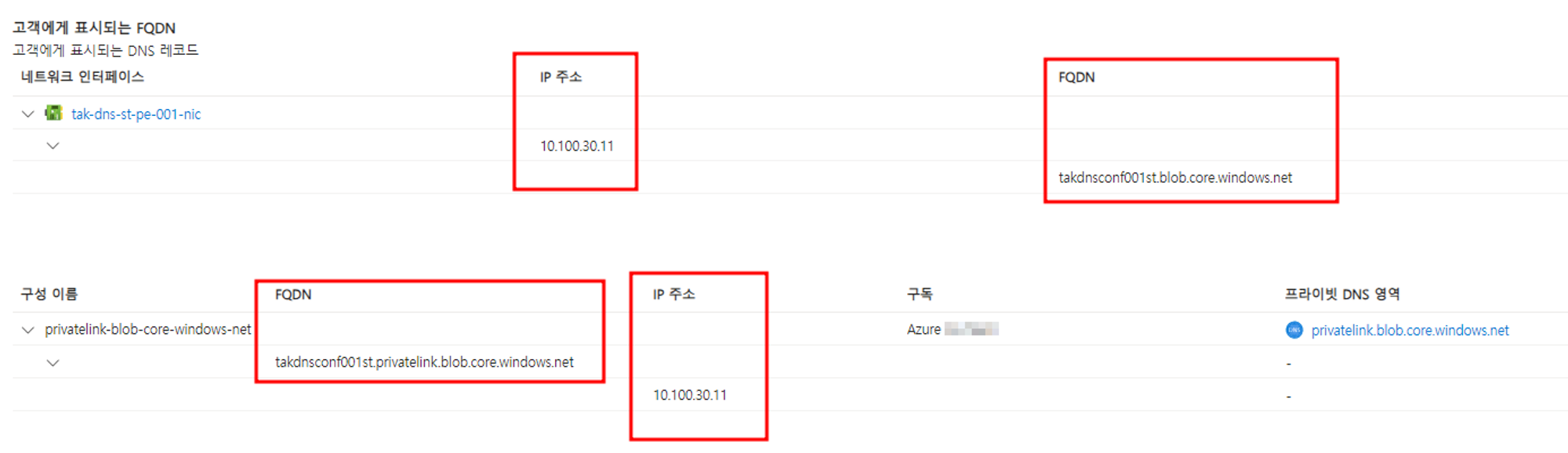- blob.core.windows.net / Azure DNS 서버 PIP