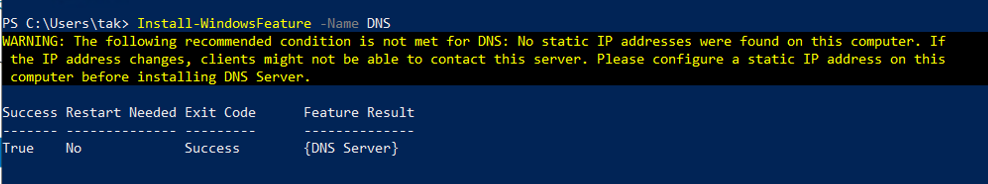 Install-WindowsFeature -Name DNS