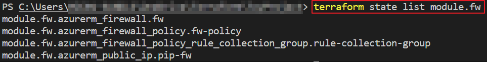 - 예시로 terraform apply -target module.fw.azurerm_firewall_policy_rule_collection_group.rule-collection-group 명령어 실행를 실행해 보았습니다. (Azure Firewall 정책 중 NAT Rule의 Source IP 변경)