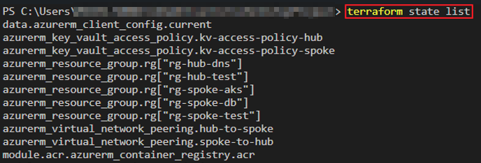 - 해당 명령어를 입력할 경우 전체 resource address list가 출력됩니다.