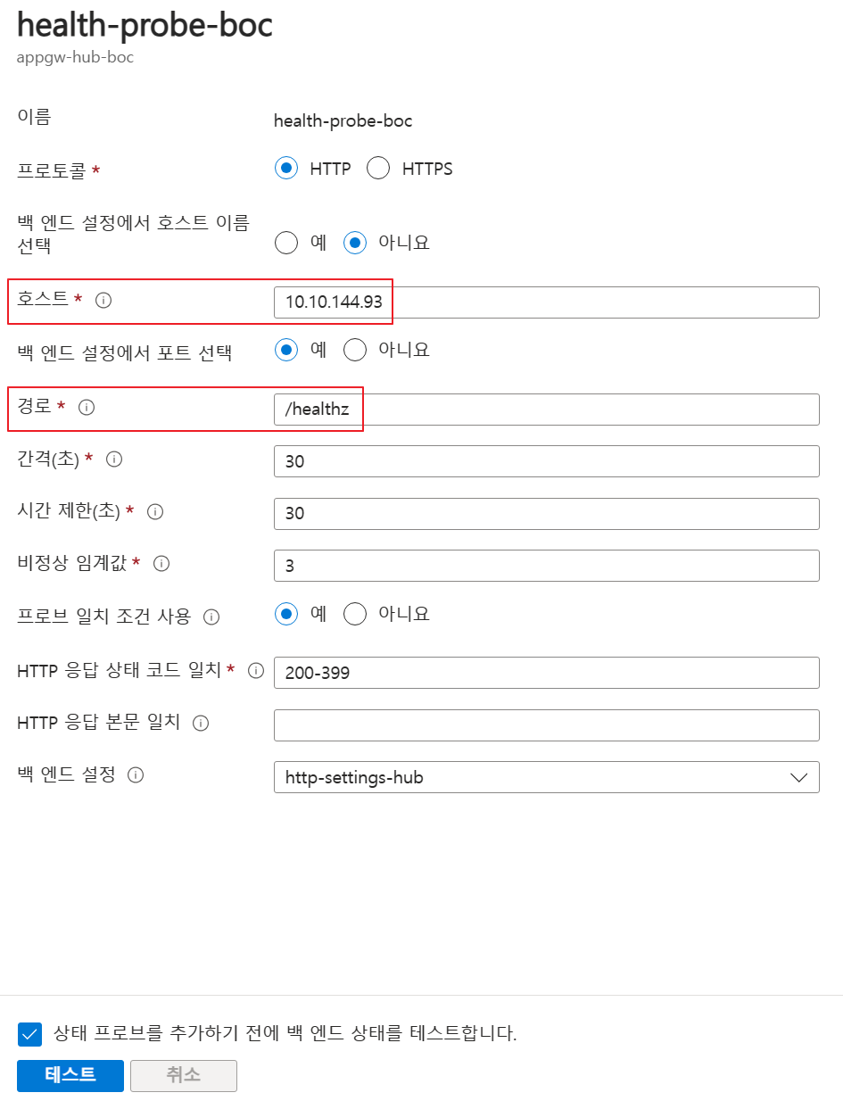 프로브가 연결된 HTTP 설정과 연결과 backend pool의 백엔드 리소스를 모니터링합니다.