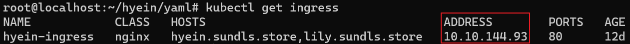 - Ingress Object 생성 시 지정한 host 이름(도메인)과 일치하도록 Record를 등록합니다.