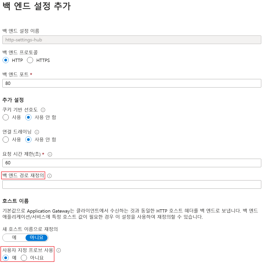 - 백 엔드 경로 재정의 : 재정의할 필요가 없기 때문에 공란으로 둡니다.
