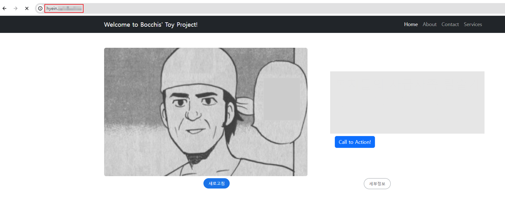 실제로 생성한 페이지에 접근해 보겠습니다. (도메인은 테스트용으로 실제 사용하고 있어 블러 처리 하였습니다.)