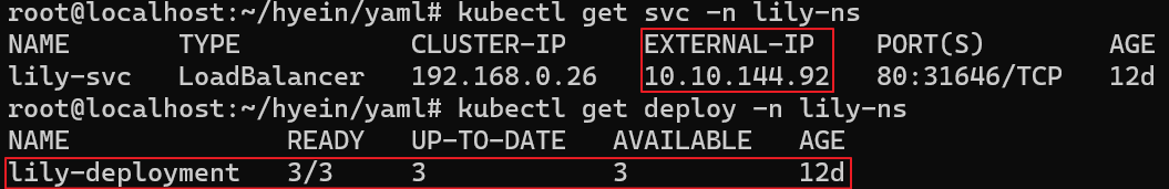 - externalName 값은 lily-svc.lily-ns로 지정합니다. 이는 lily-ns에 있는 lily-svc를 가리킵니다. 또한 이는 pod에서 lily-svc-bridge를 호출하면 실제로 변경되는 external 주소입니다.