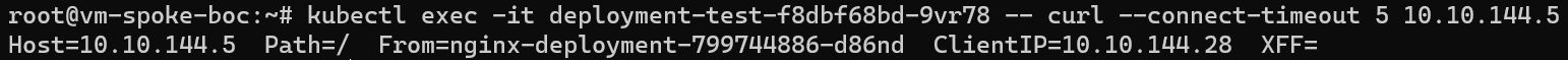 - kubectl exec -it deployment-test-f8dbf68bd-9vr78 -- curl --connect-timeout 5 10.10.144.5