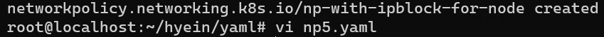 - Network Policy를 생성하기 위해 하기와 같은 명령어를 입력합니다.