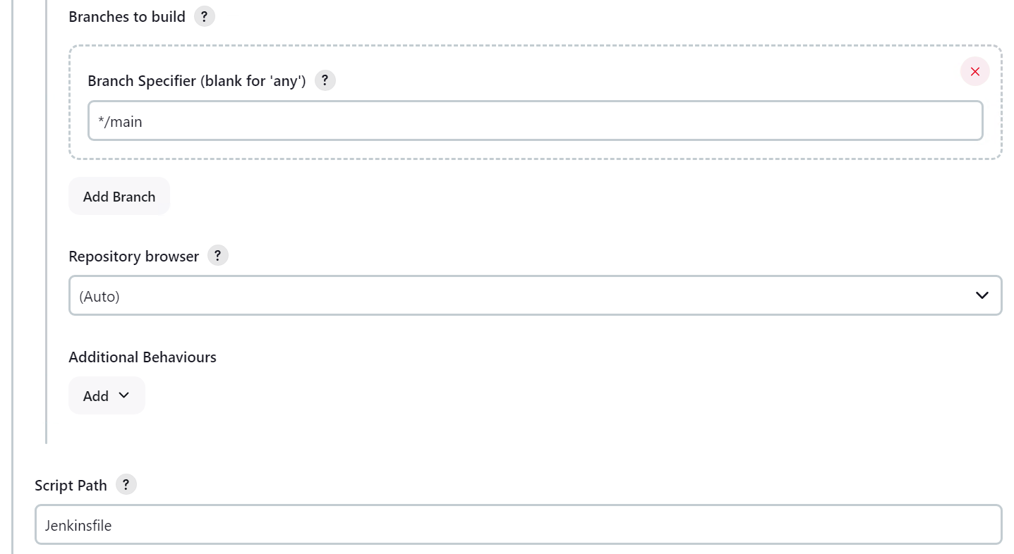 - GitHub Repository에서 Jenkinsfile이 있는 위치를 명시해 주어야 합니다.