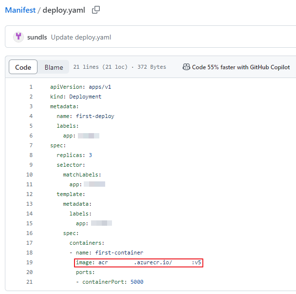 - IMAGE_TAG라는 변수에 ACR에 push된 image 중 가장 최신 버전인 값이 할당되도록 합니다.