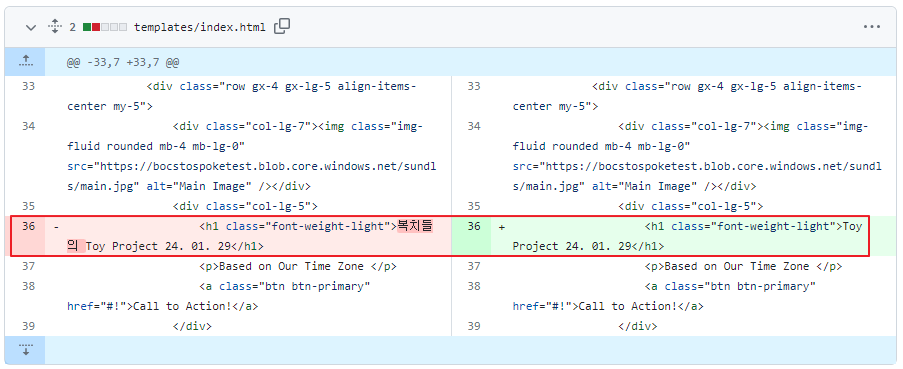 Local에서 코드를 수정한 후 GitHub에 변경 사항을 push 해 보았습니다.