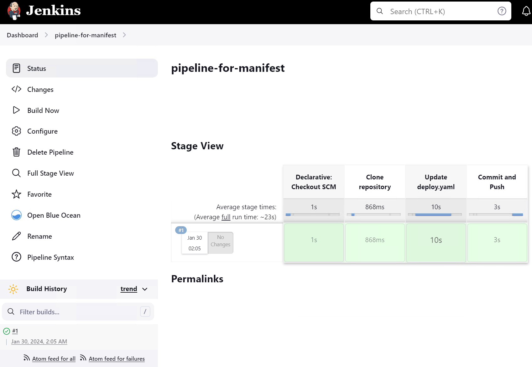 - Job이 정상적으로 종료된 것을 Jenkins에서 확인할 수 있습니다.