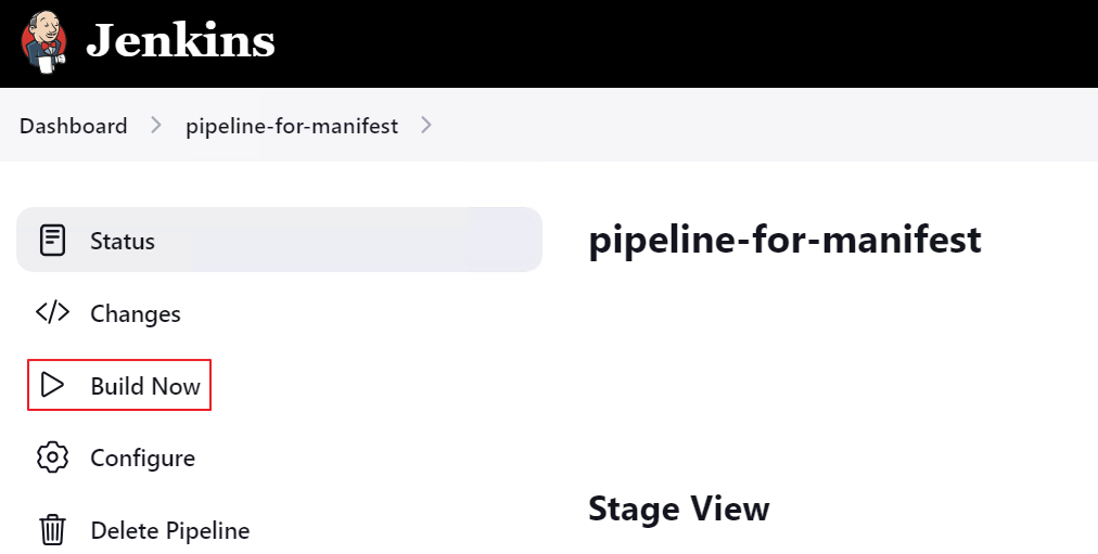 - Pipeline Project에서 [Build Now]를 클릭합니다.