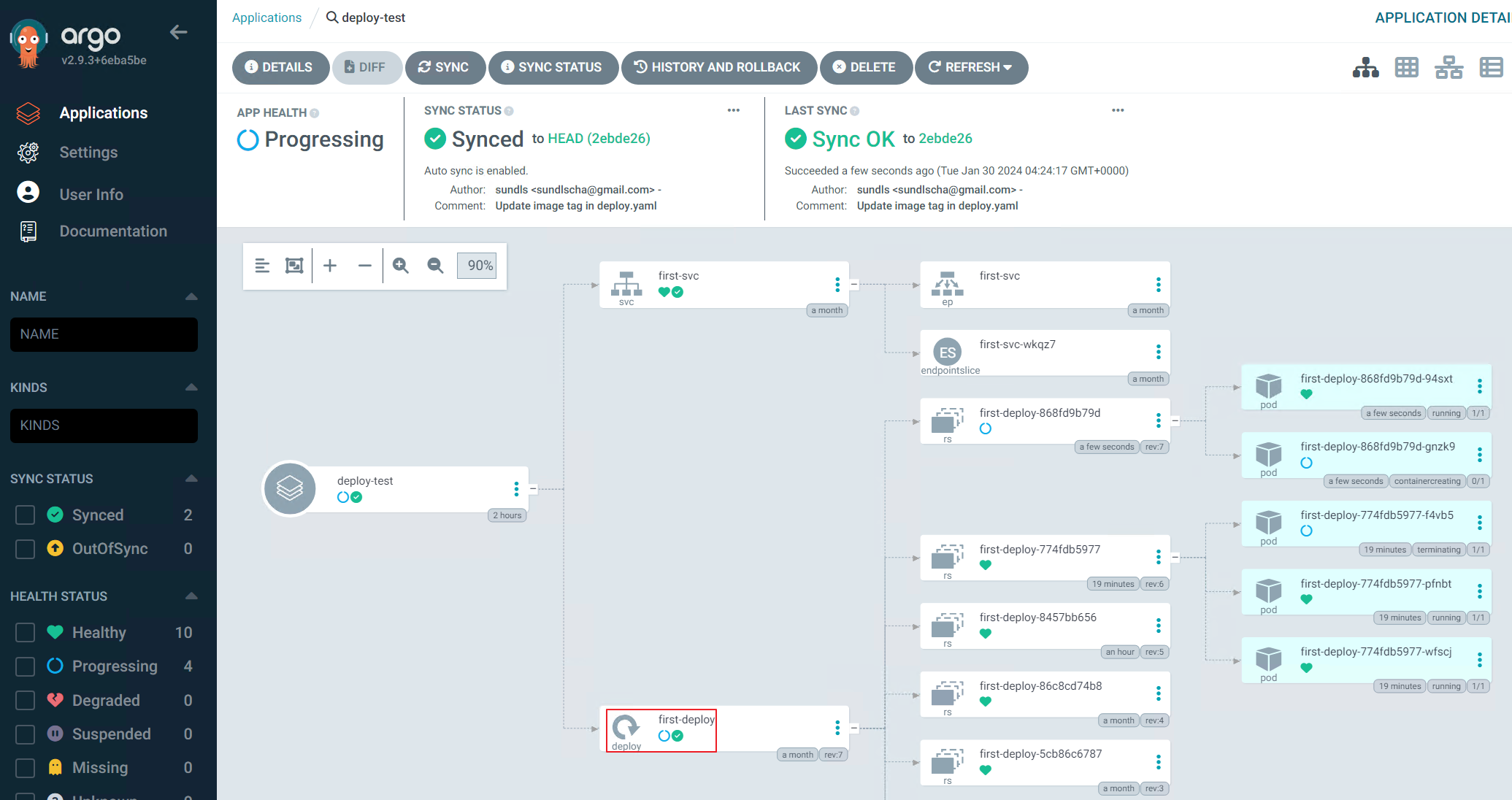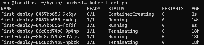 - kubectl get po 명령어를 사용하여 Sync가 진행되는 과정을 확인할 수 있습니다.