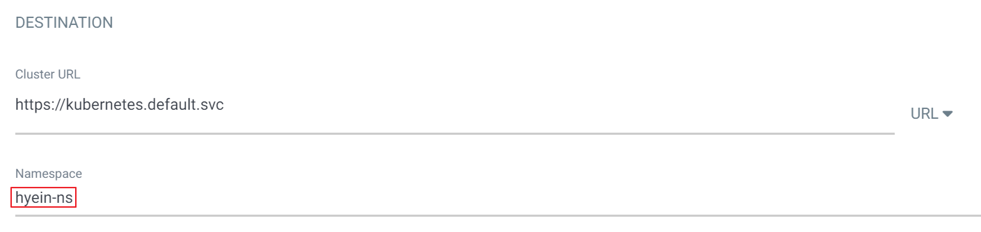 - Namespace : Application이 배포될 namespace를 입력합니다.