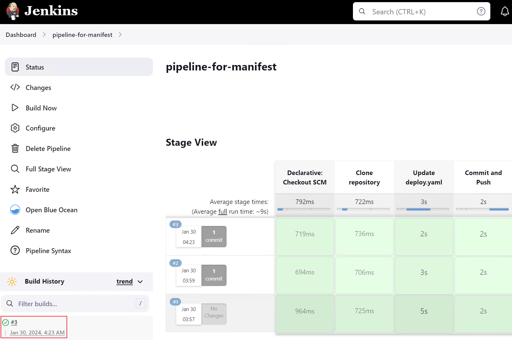 3️⃣ 두 번째 Jenkins Job은 변경 사항이 적용된 이미지를 두 번째 GitHub Repository, 즉, manifest file이 업로드 되어 있는Repository에 대해 이미지 버전을 변경합니다. (deploy.yaml file의 이미지 버전을 변경)