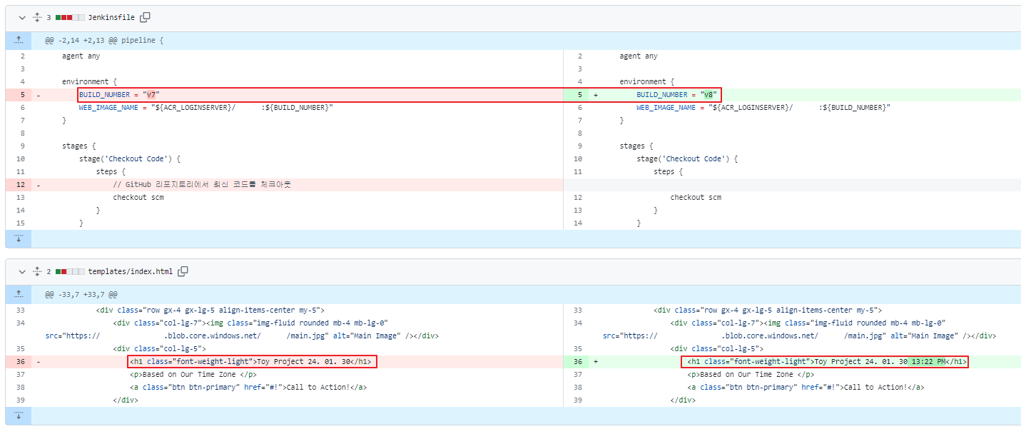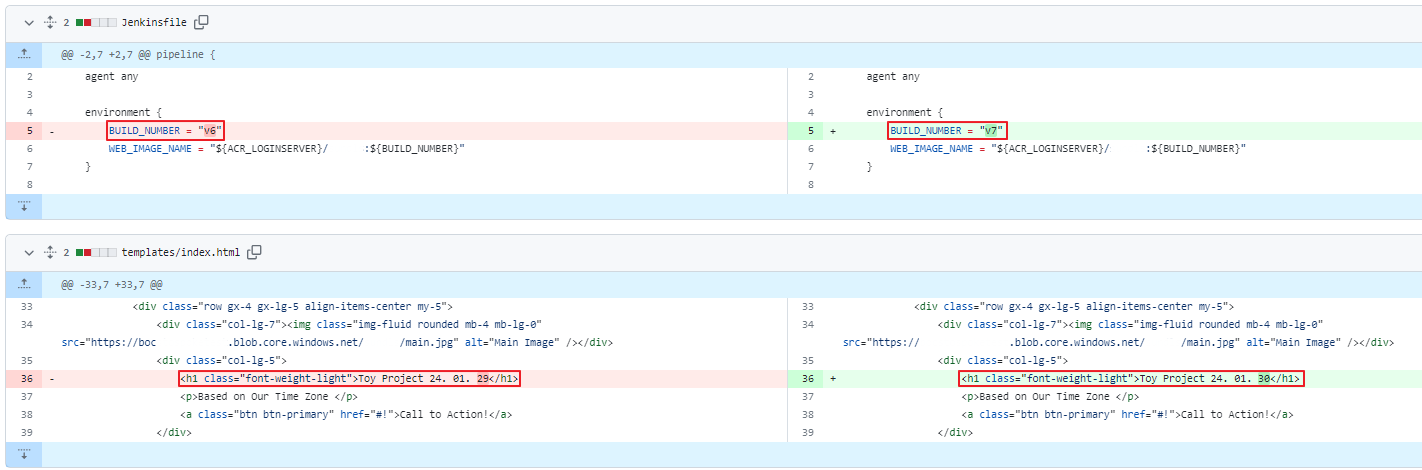 두 Job을 연결하였으니 이번에는 이미지 관련 코드를 수정할 때 자동으로 deply.yaml file까지 변경되는지 확인해 보겠습니다.