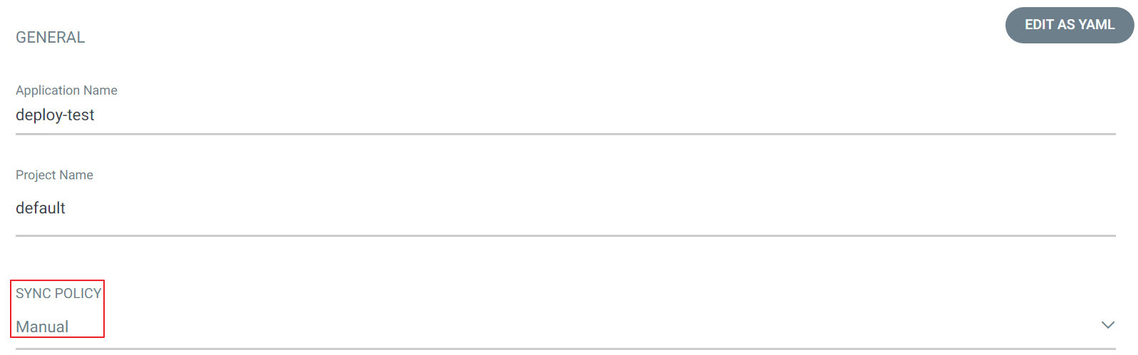 - Sync Policy를 설정합니다. (현재는 테스트를 위해 Manual로 구성하였으나 뒤에서 Automatic으로 변경할 예정입니다.)