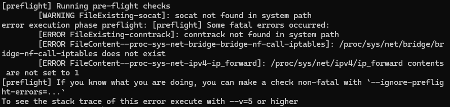 - conntrack not found in system path라는 문구가 출력되어 있으므로 conntrack을 설치합니다.