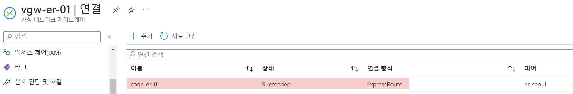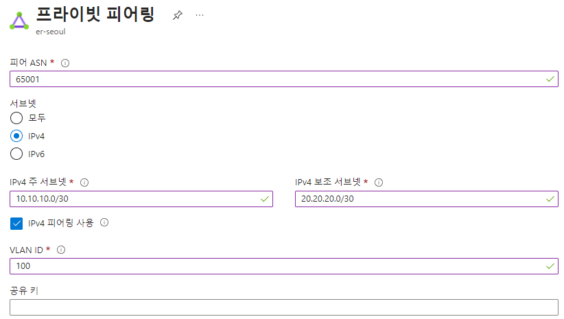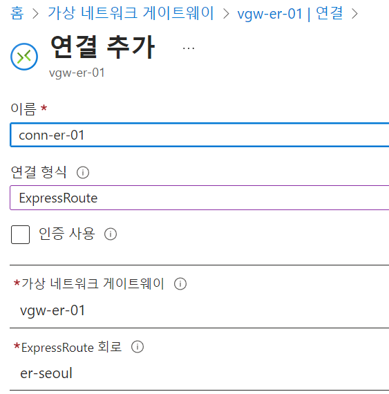 ExpresRoute 회로 : er-seoul # 사용할 ExpressRoute Circuit 선택