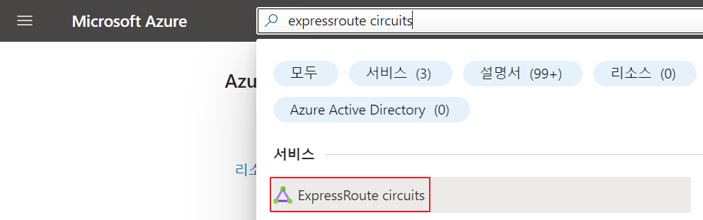 - 상단의 검색창에서 [ExpressRoute Circuits]를 검색합니다.