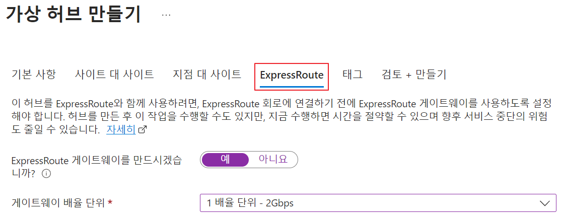 ExpressRoute 게이트웨이를 만드시겠습니까? : 예