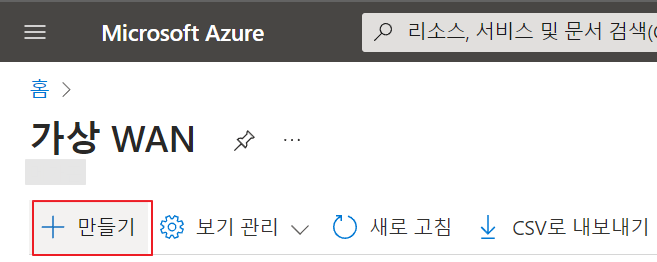 - [+ 만들기] 버튼을 클릭하여 [Virtual WAN]을 생성합니다.