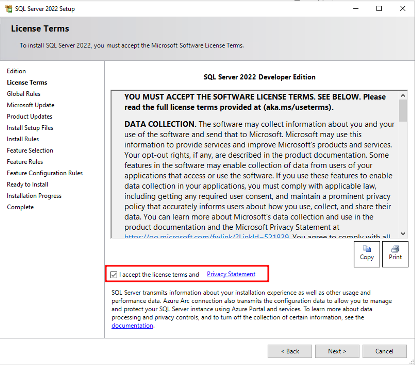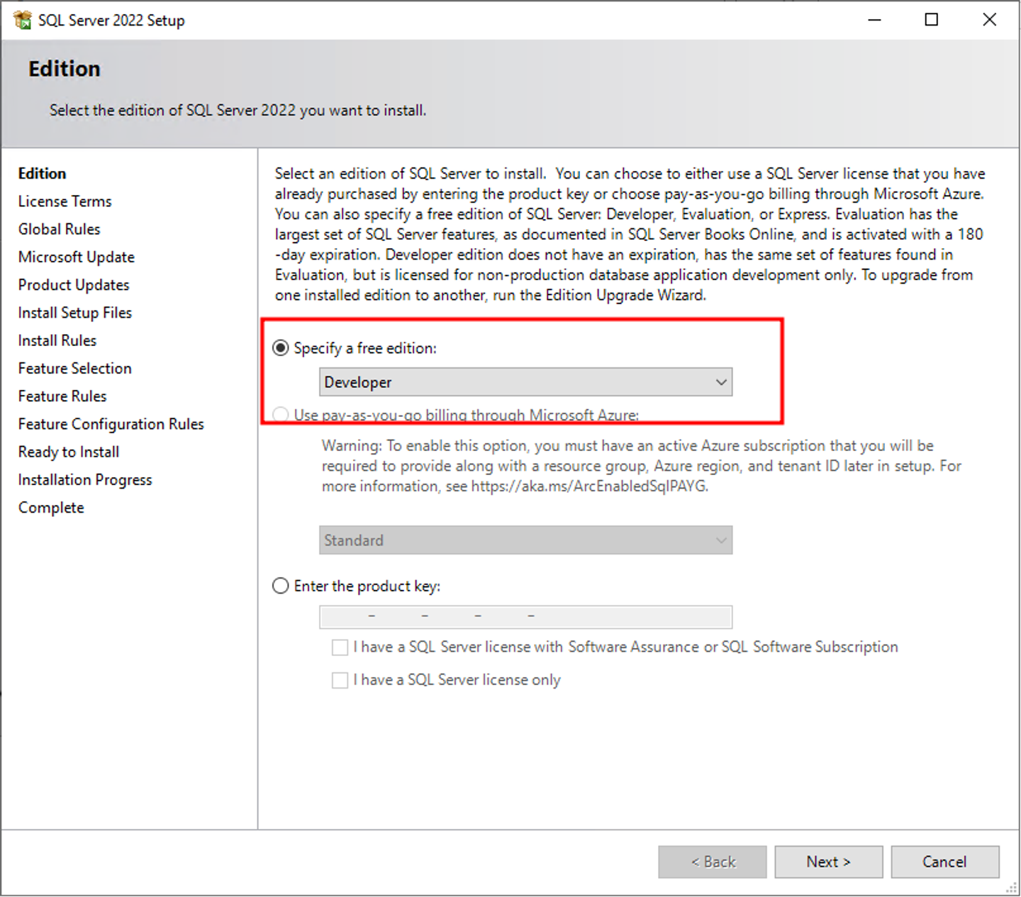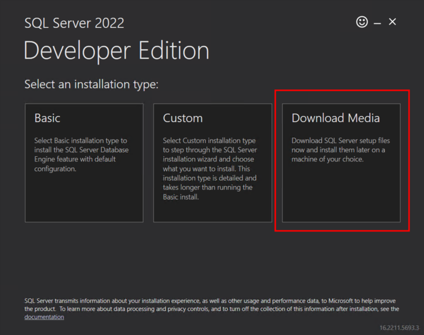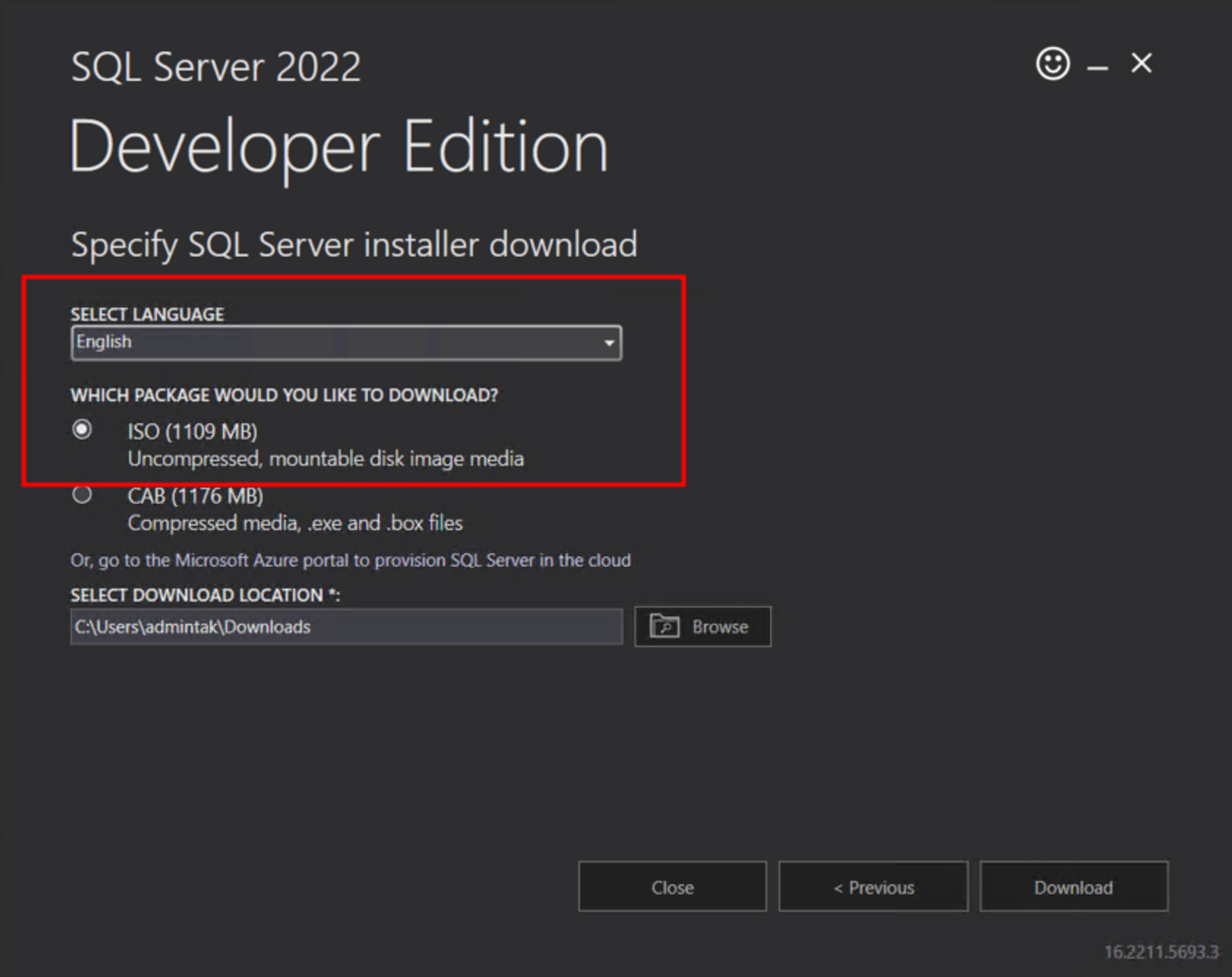 : 해당 과정에서는 SQL Server 2022 및 개발자 버전을 설치하였습니다.