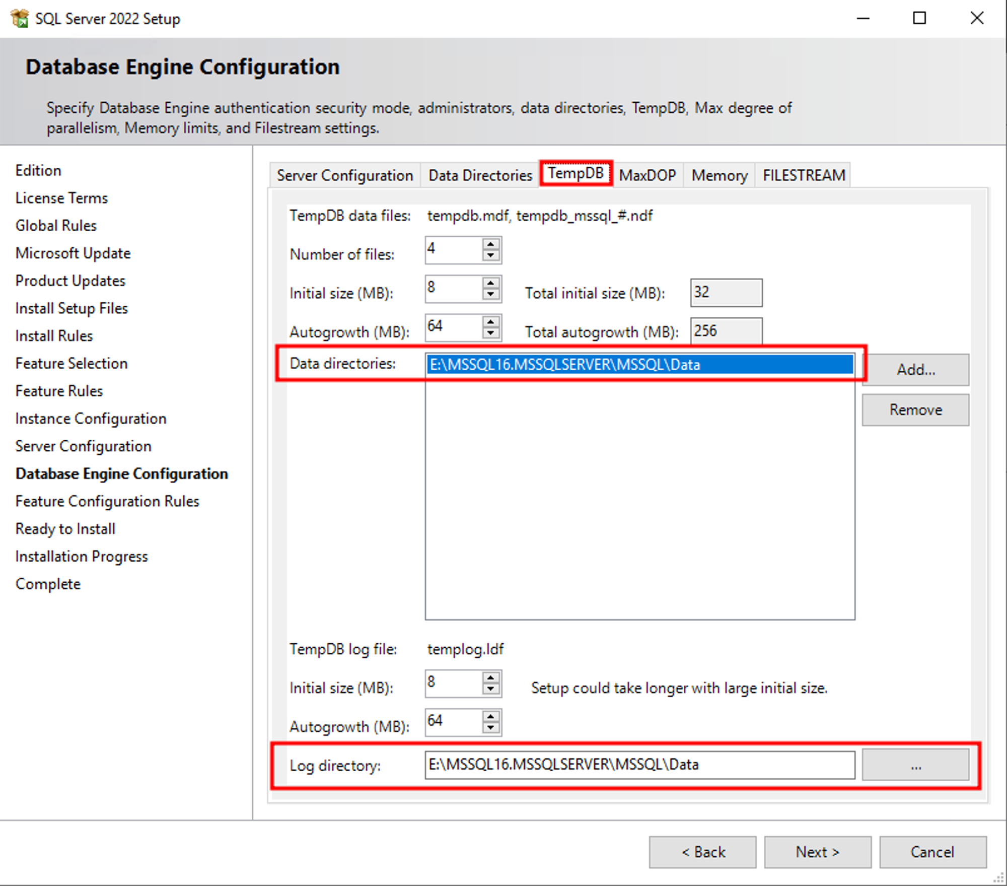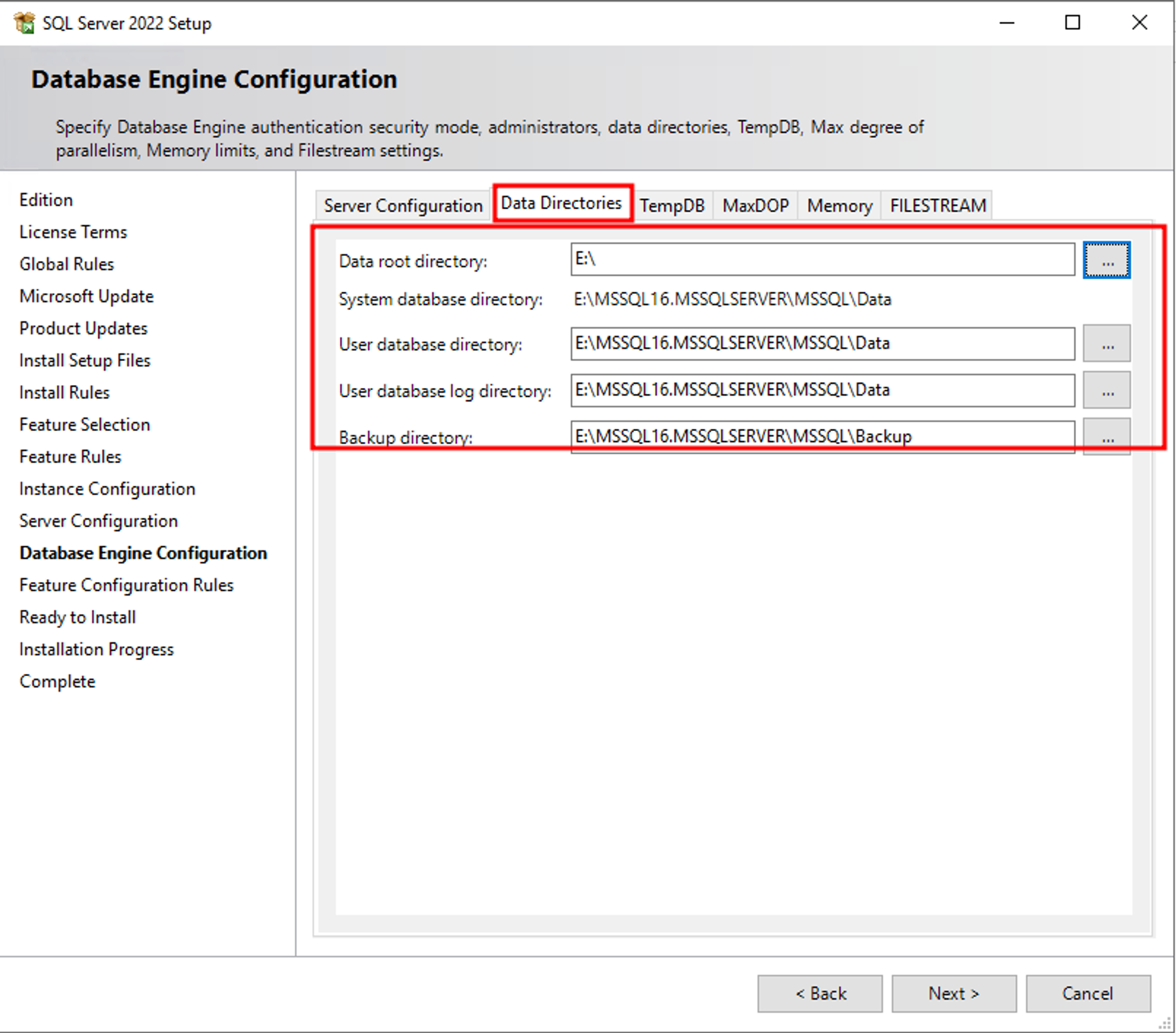 : 실제 사용자가 사용하는 Database의 데이터들에 대한 저장 경로 지정하는 단계입니다. 앞서 설명한 것처럼, Always on의 경우, Database 수준으로 이뤄지는 고가용성 서비스이므로 각 VM에 Attach 한 Data Disk 경로를 지정합니다. (백업 등 디스크 사용이 용이)