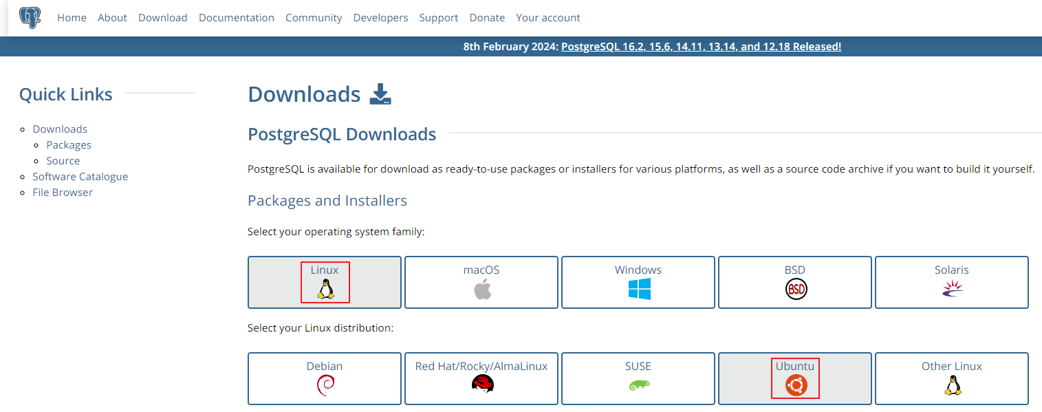 - https://www.postgresql.org/download/ 페이지로 이동하여 Linux > Ubuntu를 선택한 후 해당 페이지의 install 과정을 따라 psql 설치를 진행합니다.