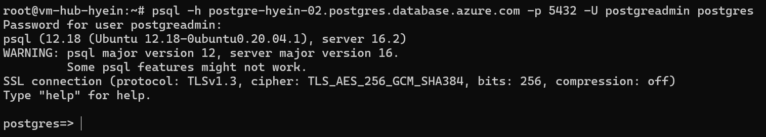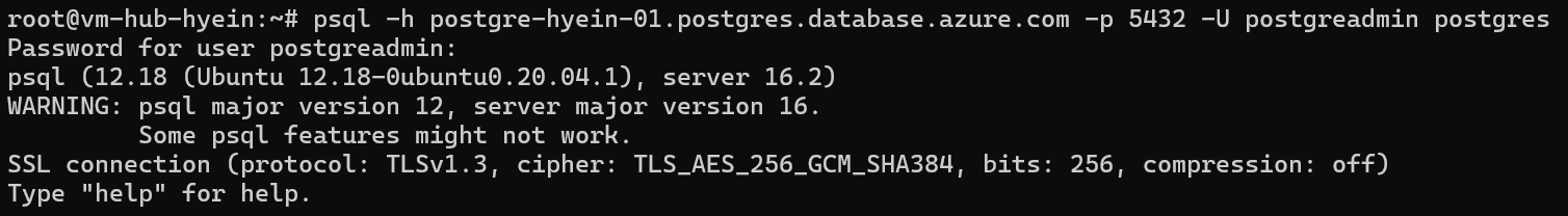 규칙 생성이 완료된 후, Hub 가상 머신에서 Postgre01에 접근해 보겠습니다.