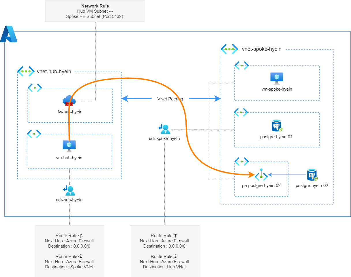 3.4 Hub VM → Azure Firewall → PostgreSQL (Private Endpoint)