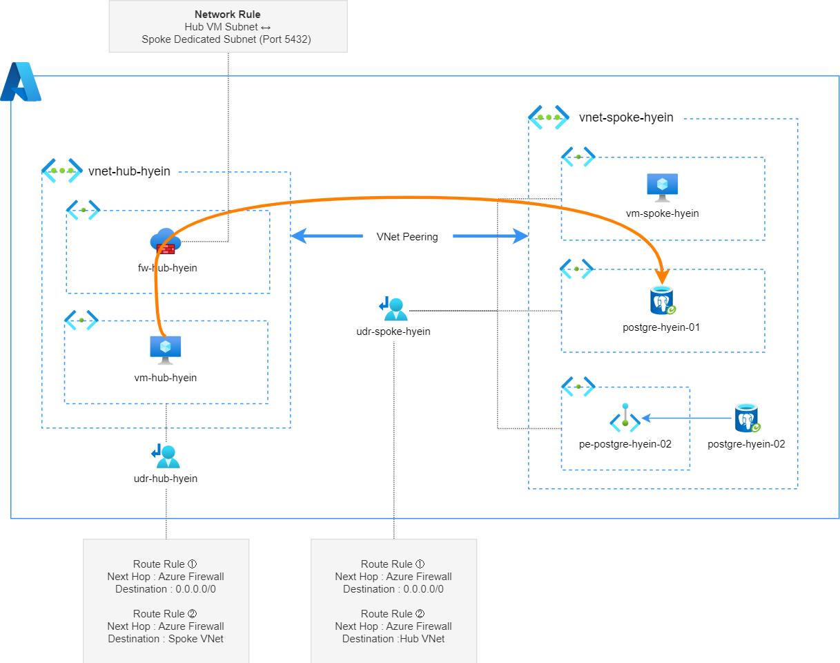 3.3 Hub VM → Azure Firewall → PostgreSQL (VNet Integration)