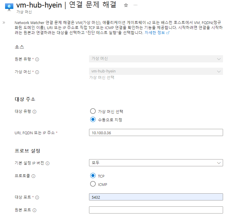 다음으로 가상 머신 쪽에서 연결 진단을 실행해 보겠습니다.