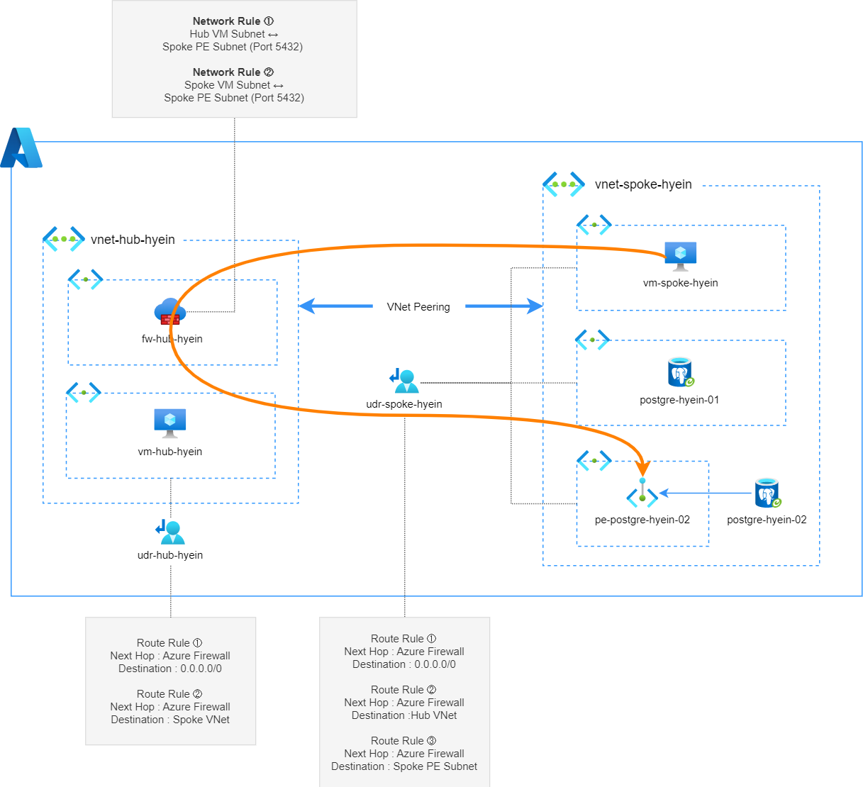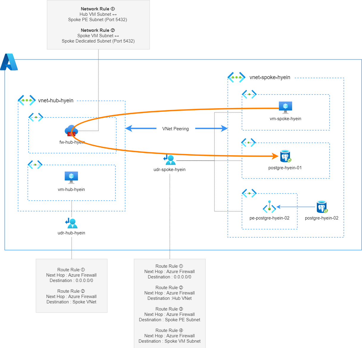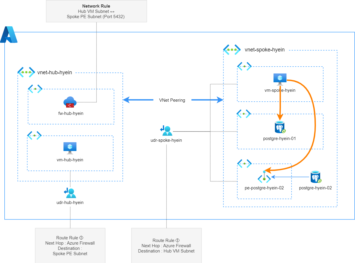 3.6 Spoke VM → Azure Firewall → Spoke 대역의 PostgreSQL