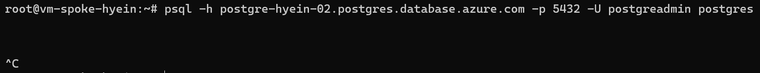 먼저, Spoke 가상 머신에서 Azure Firewall을 거쳐, Private Endpoint와 연결된 Azure Database for PostgreSQL Flexible Server에 접근하도록 테스트해보겠습니다.