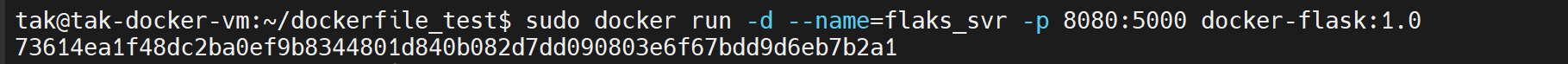 sudo docker run -d --name=flaks_svr -p 8080:5000 docker-flask:1.0