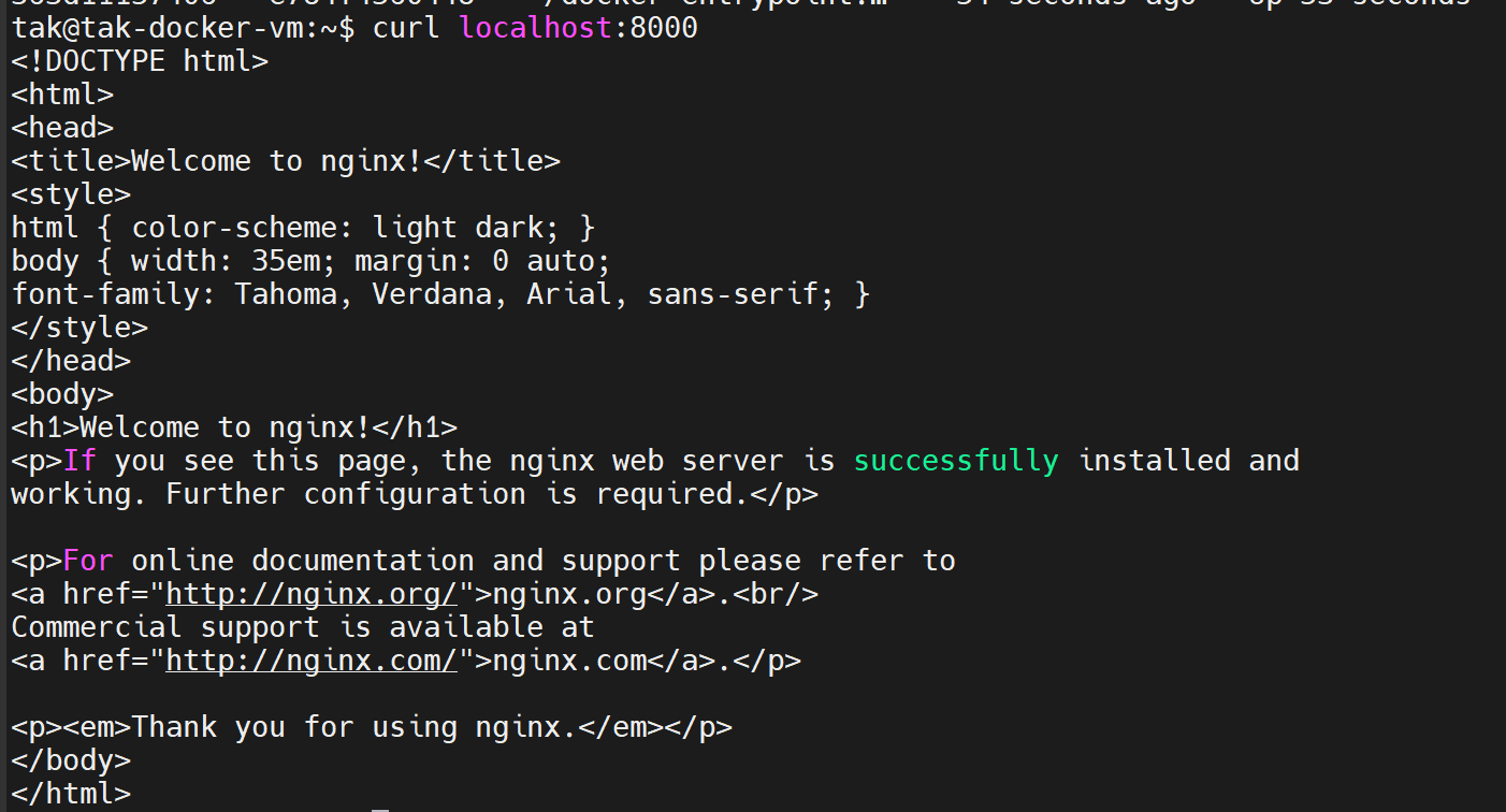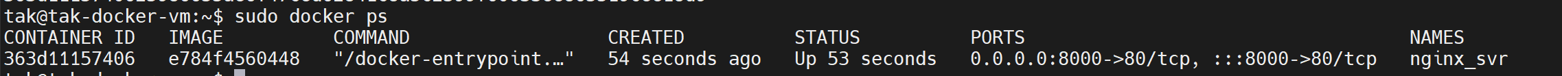 sudo docker run -d --name=nginx_svr -p 8000:80 nginx