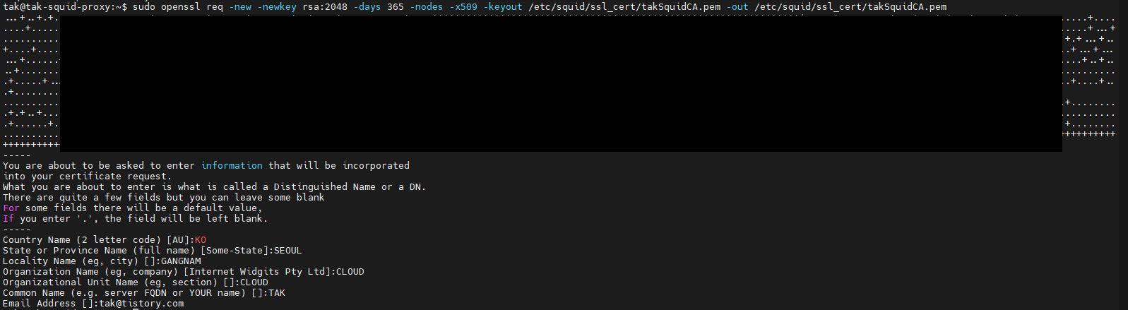 sudo openssl req -new -newkey rsa:2048 -days 365 -nodes -x509 -keyout /etc/squid/ssl_cert/<CA_name>.pem -out /etc/squid/ssl_cert/<CA_name>.pem