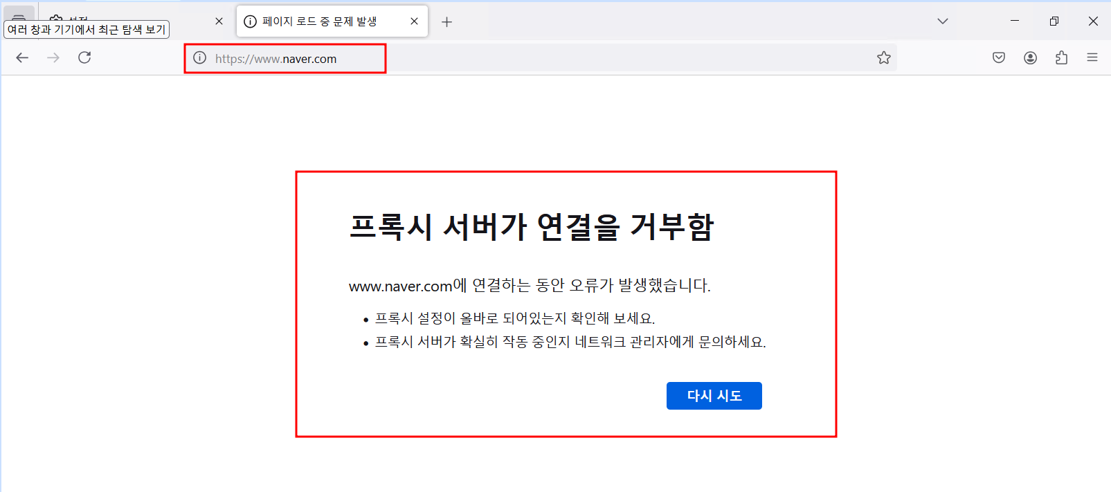 - Client는 Windows 10로 브라우저(Firefox) 단에서 프록시 설정을 진행해 보겠습니다.