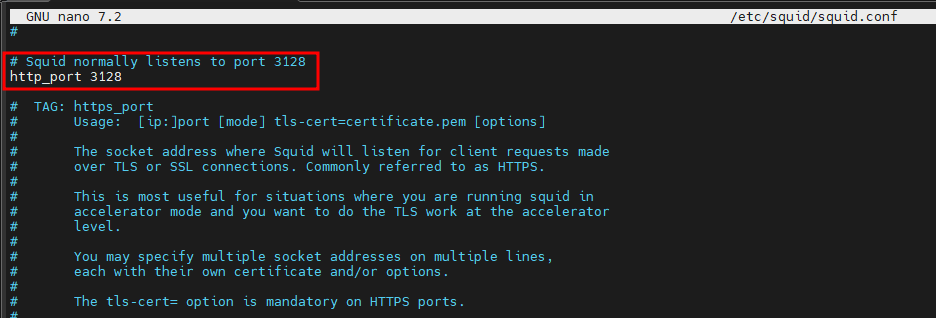 Squid 가 리스닝 하는 Default 포트 정보 확인