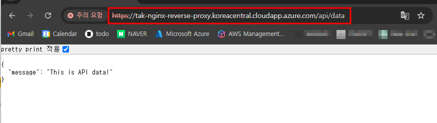 API 서버가 중계된 요청에 대한 응답(데이터)을 반환하며 Proxy 역할이 잘 수행됨을 확인할 수 있습니다.