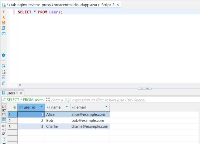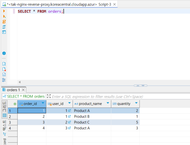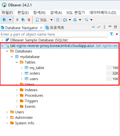 /etc/nginx/nginx.conf 의 stream 블록에 정의한 설정에 따라 DB 서버에 접근할 수 있는지 확인해 보겠습니다.