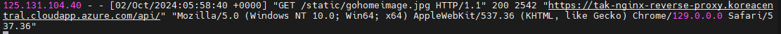 이제 Nginx Reverse Proxy 서버의 로그를 살펴보겠습니다.