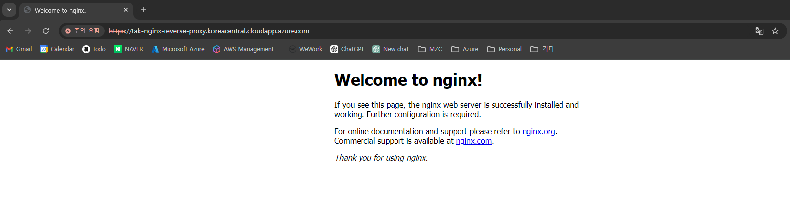 우선, 기본 Nginx가 서비스하는 페이지를 확인해 보겠습니다.