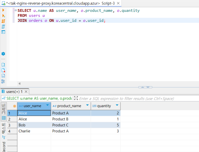 중계의 흐름은 클라이언트가 Nginx에 연결하면, Nginx는 요청을 받아 정의된 upstream 블록을 통해 DB 서버에 전달합니다. 이때 Nginx는 클라이언트의 연결을 DB 서버와 연결하는 중개자 역할을 합니다. 이후, DB 서버는 Nginx로부터 받은 요청을 처리한 후, 결과를 Nginx로 반환합니다. 이 과정에서 DB 서버는 클라이언트의 IP 주소를 모르고 Nginx의 IP 주소만 알고 있습니다.